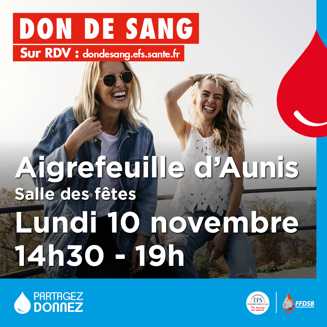 Lundi 10 novembre 2025 de 14h30 à 19h, à la salle des fêtes d’Aigrefeuille d’Aunis – Avenue des Marronniers